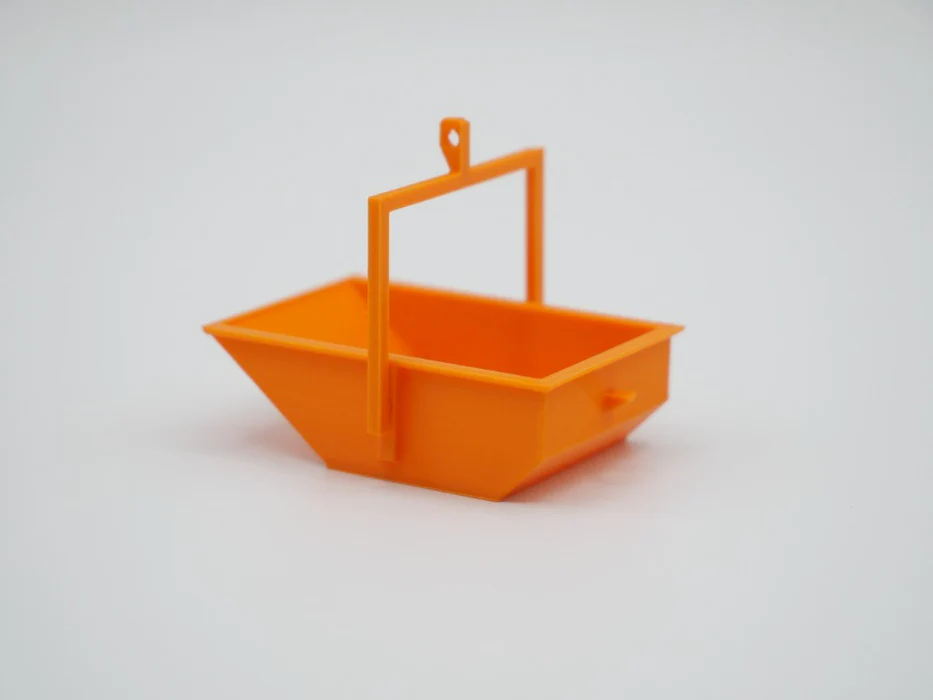 Aushub-, Schutt-, Kippmulde mit beweglichem Bügel.