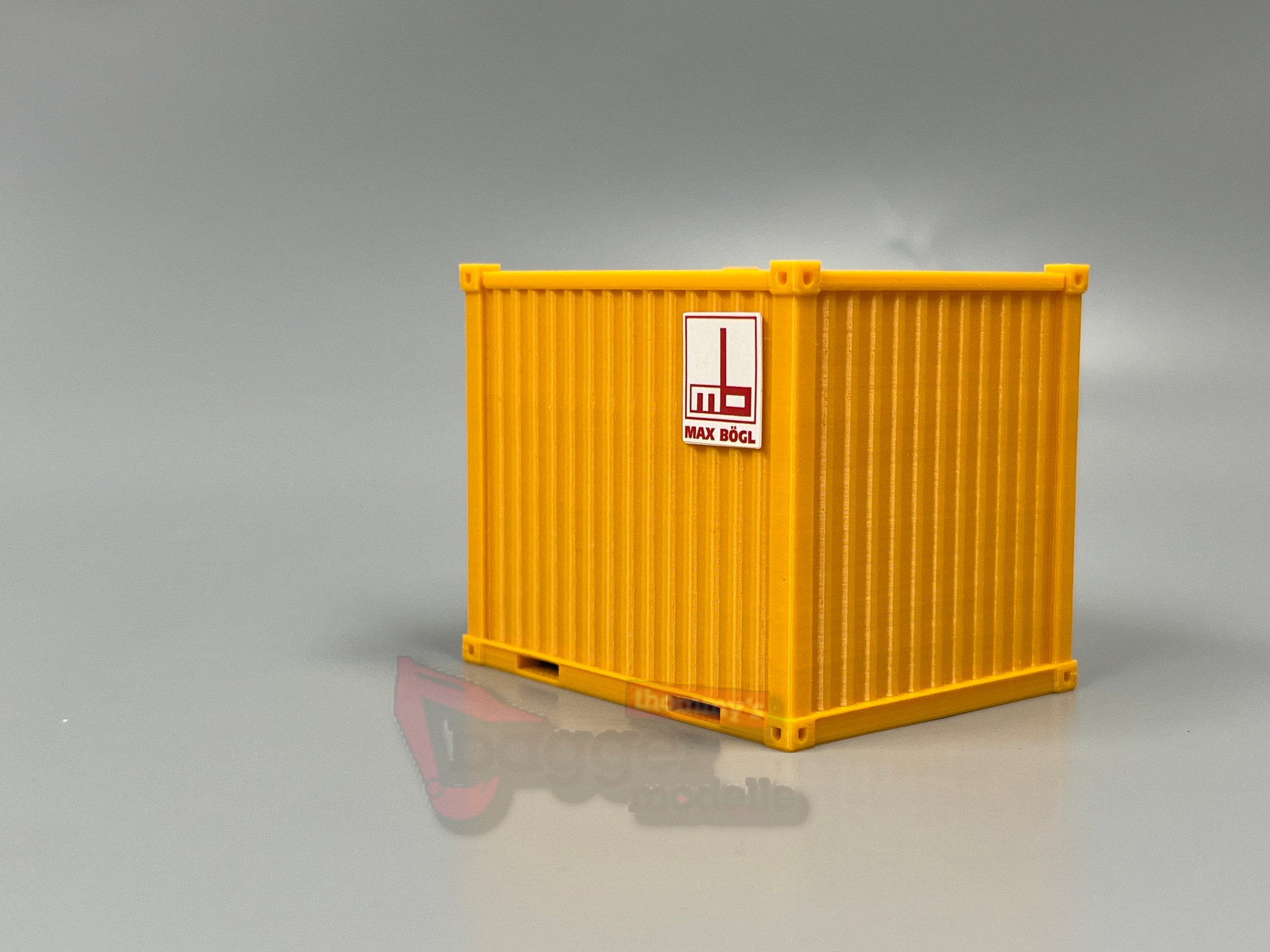 Der Materialcontainer / Lagercontainer / Seecontainer 10ft im Maßstab 1:50, ideal für detailgetreue Baustellen-Dioramen und Ladegut. Das Modell besticht durch bewegliche Türen, die realistische Beladungs- und Entladungsszenarios ermöglichen. Für die Innenausstattung können Sie z.B. unsere Regale, Werkzeuge, Leitkegel, usw. verwenden.