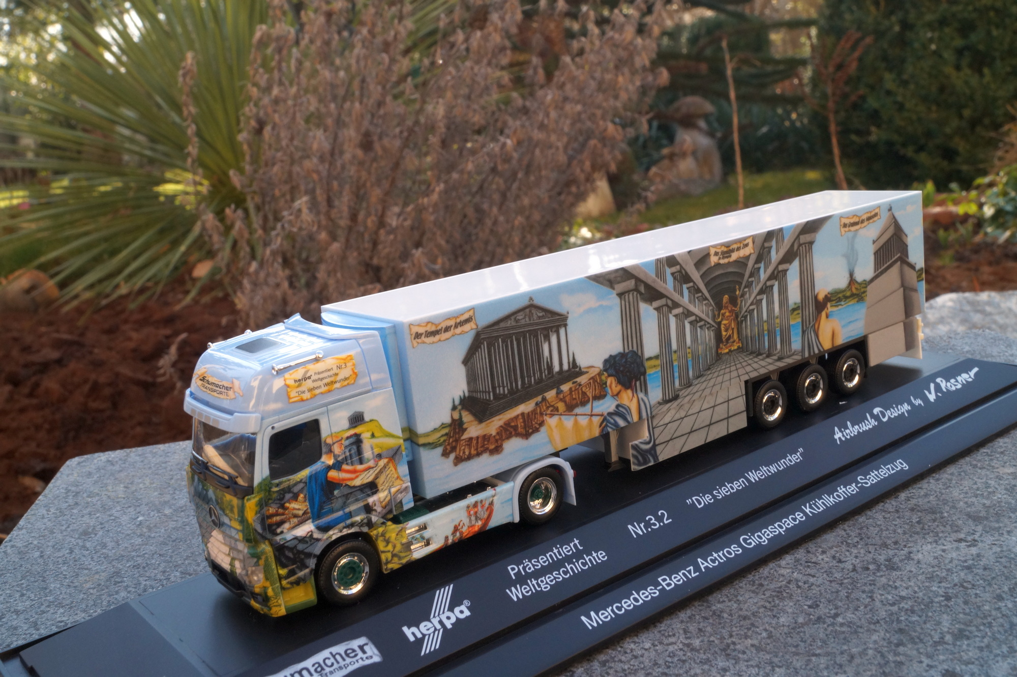 12214 - Herpa - Mercedes-Benz Actros `18 Kühlkoffer-Sattelzug „Herpa Weltgeschichte Nr. 3.2, Schumacher“