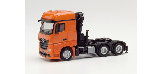 herpa Mercedes-Benz Arocs Zugmaschine mit Ladekran und Heckabstützung, orange