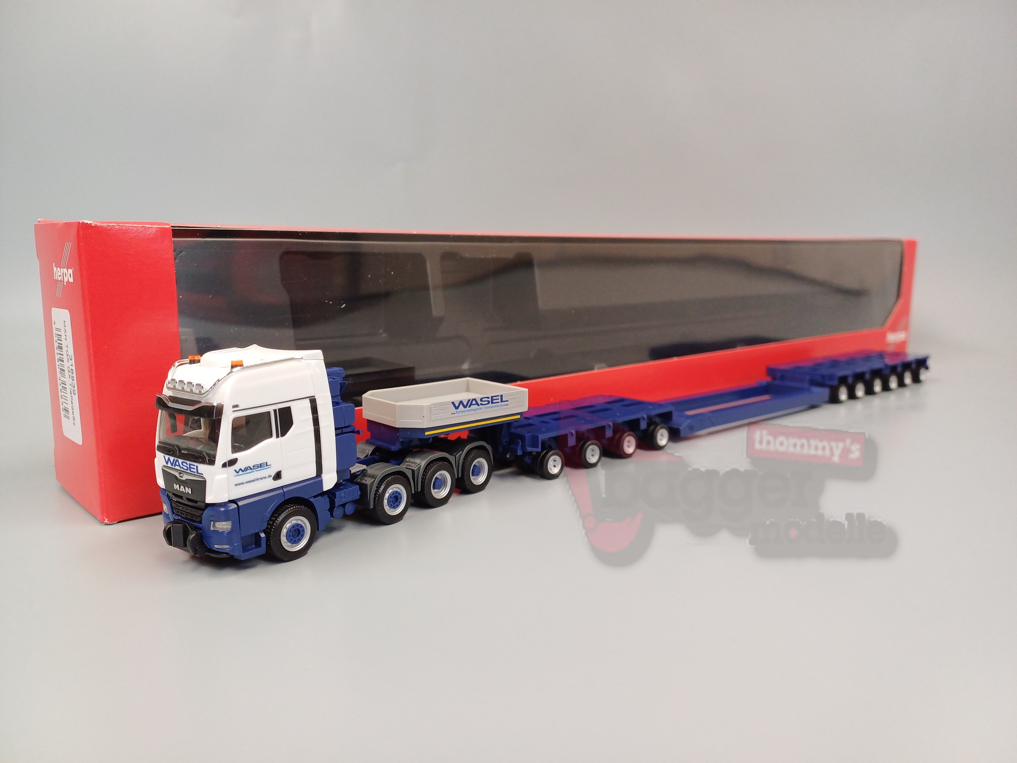 Herpa - MAN TGX GX Tieflade-Sattelzug Tieflader 10 achs "Wasel"