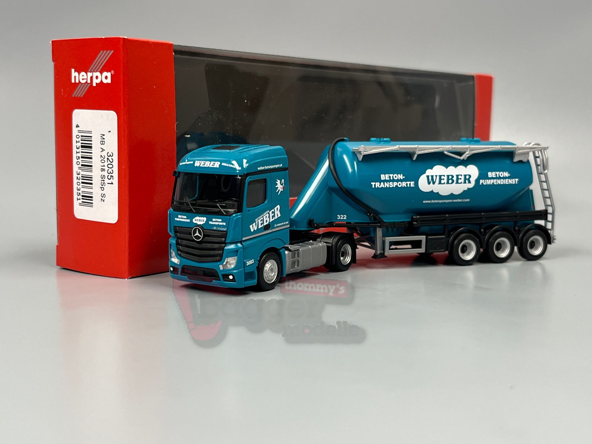 320351 - Herpa - Mercedes-Benz Actros '18 Streamspace Eutersilo-Sattelzug "Weber Betonpumpen" (Österreich