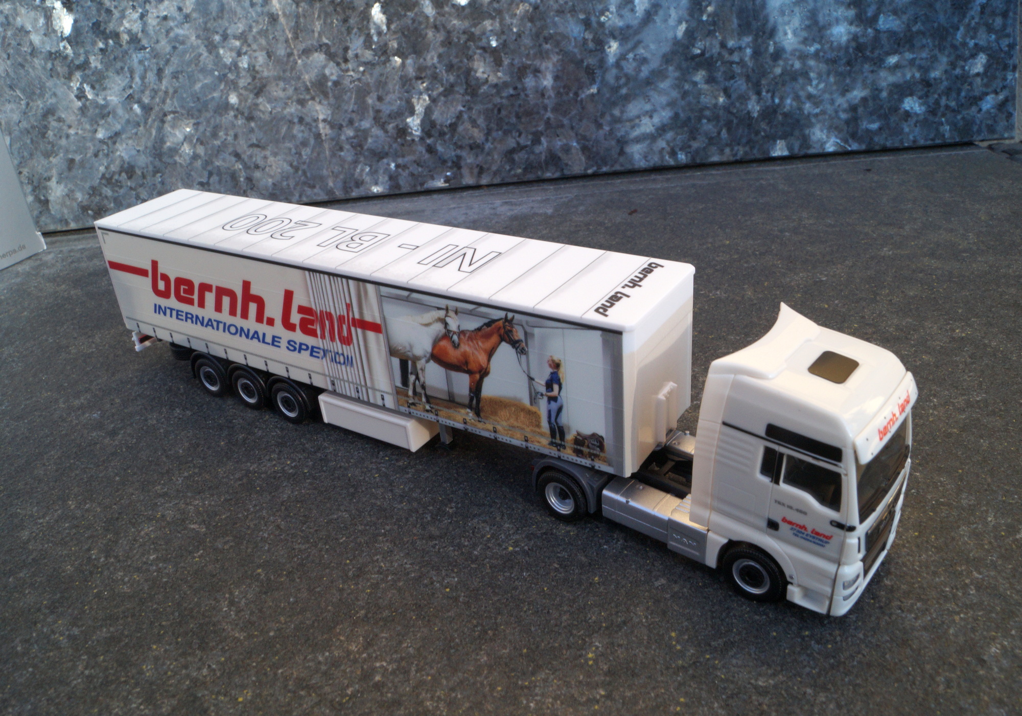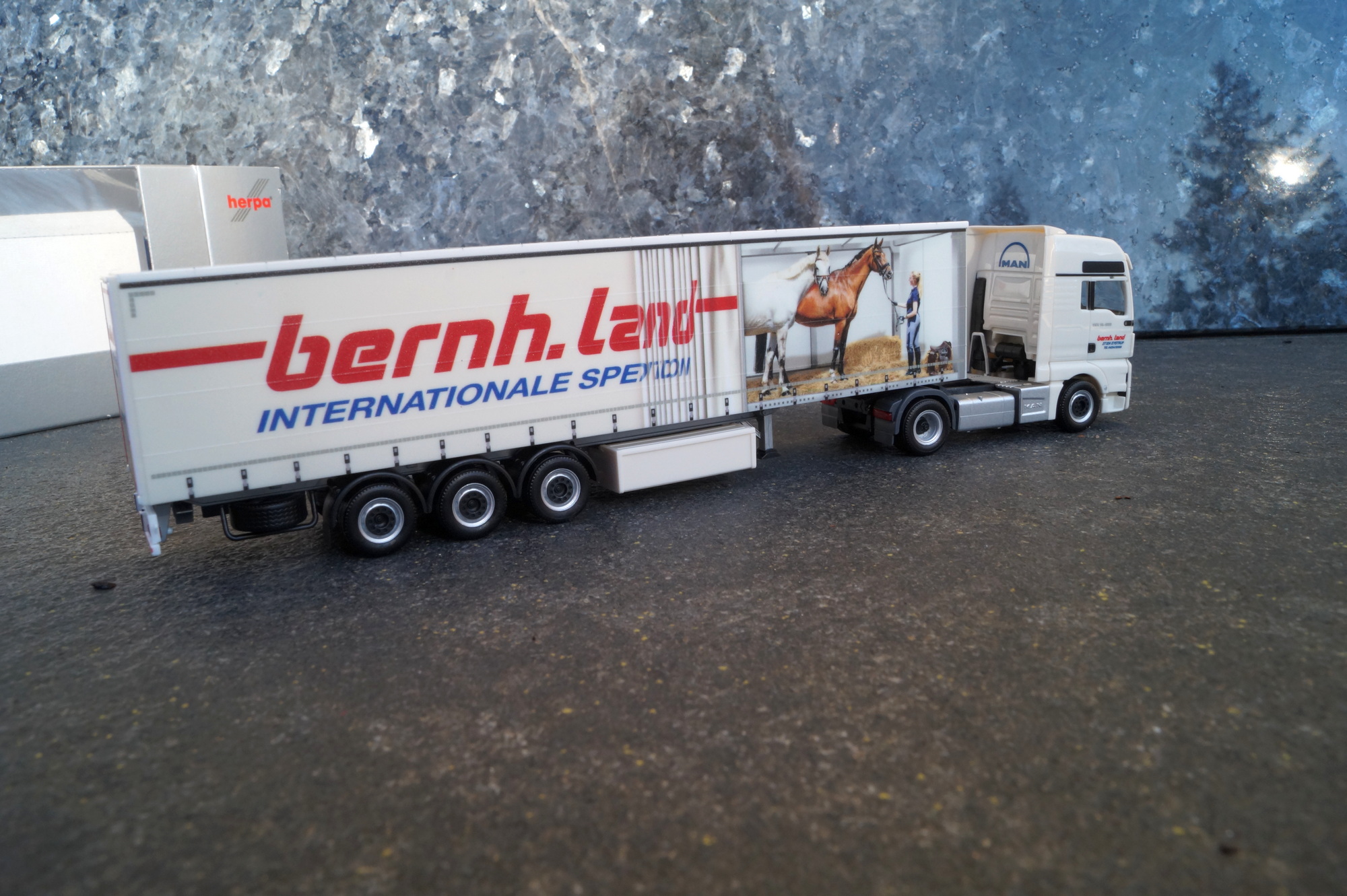 Herpa MAN TGX XXL Gardinenplanen Sattelzug "Spedition Land"